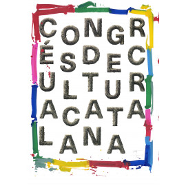 Descripció: El cartell oficial del nou Congrés de Cultura Catalana, obra de Perejaume i Frederic Amat, que han treballat a quatre mans que lliga amb la idea de treball col·lectiu i transformació que proposa l’esdeveniment. A la imatge hi trobareu lletres de suro en ple bullici creatiu, al centre del debat i sense jerarquies, en moviment i amb un marc acolorit que mostren la voluntat de debatre i de posar la mirada al futur.